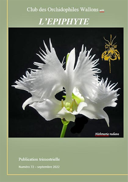 Histoire d’un Psychopsis Qu'est-ce qu'une forêt primaire ? Le Calendrier du COW Couverture : Habenaria Sunrise Plumes Janvier : Aerangis fastuosa Février : Cattleya x Brabantiae Mars : Dendrobium cuthbertsonii agathodaemonis La Nomenclature Binominale - 1 Exposition Internationale d'Orchidées Wallers-Arenberg 24-24 sept. 2023 A Sumatra, le chant des orchidées sauvages